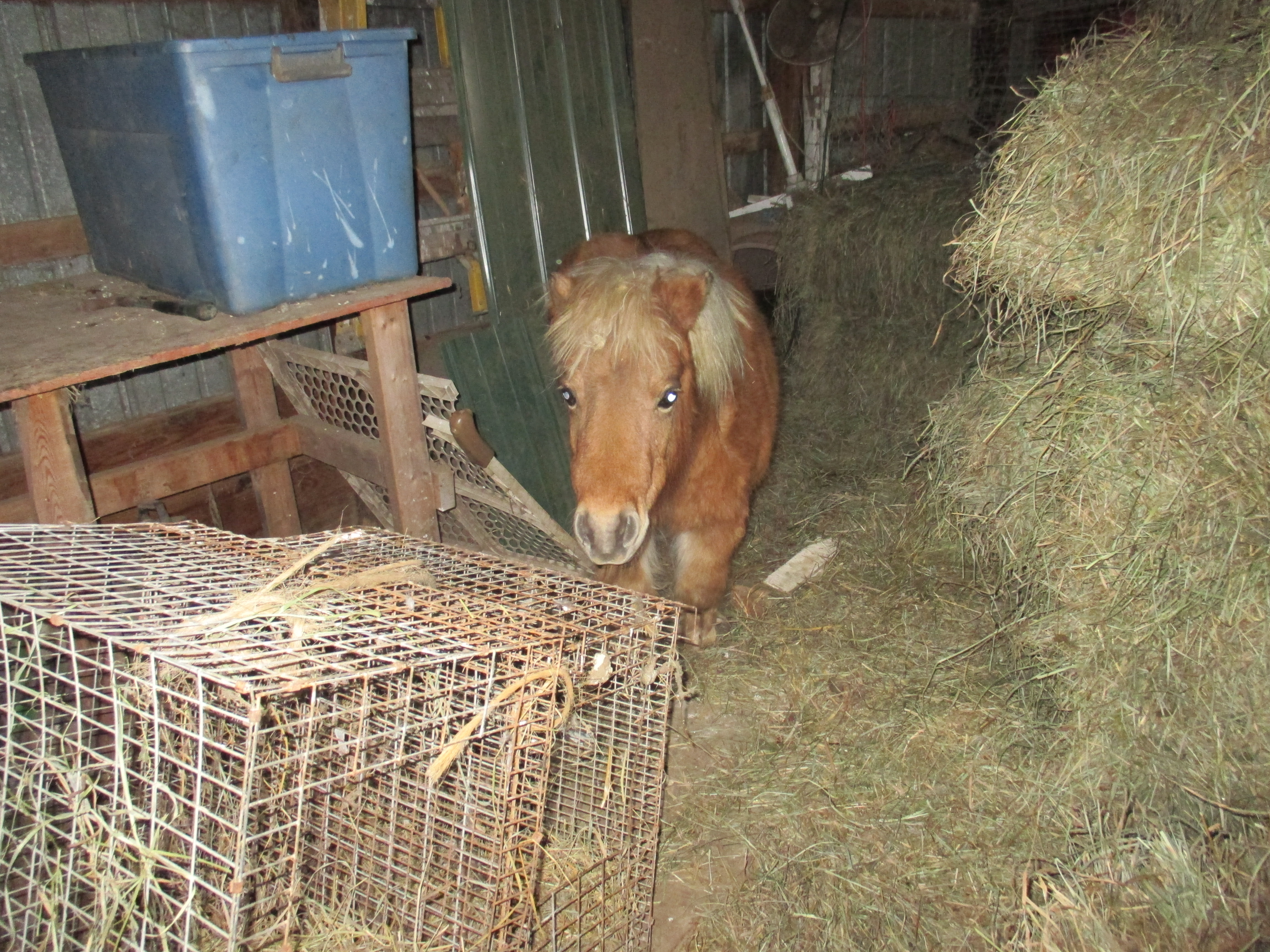 oh what fun it is in the barn! The natives were restless today and broke through the inside pen! They managed, with little effort I’m sure, to knocked over 4 or 5 bales of hay which weigh around 50lbs. They also knocked over some cages and destroyed at least two hay mounds! Best part of all? Laci the mini tank got herself stuck behind the knocked down hay and cages, she could not get out of the corner. Since Super Farmer is working, I had to dig my way to her to set her …free. Of course the thought crossed my mind to leave her there as punishment but she would only eat her way out which would make her sick. So…after chasing one donkey and a llama out of the forbidden area, I worked on setting little Miss Naughty free. Yes, I have it on film. I’m getting better at remembering to take my camera with me. My intent was to take pictures of baby Promise.